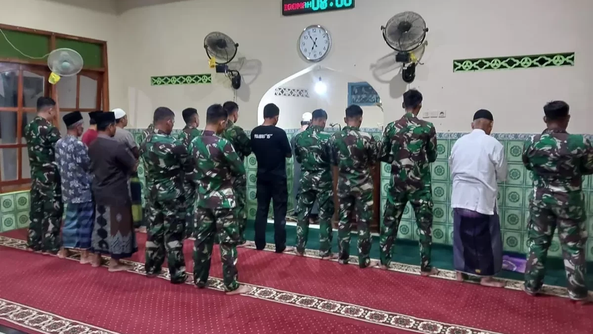 Usai seharian bekerja membangun desa, para prajurit tidak melupakan kewajiban ibadah, seperti yang terlihat pada Sabtu malam (25/04/2026).